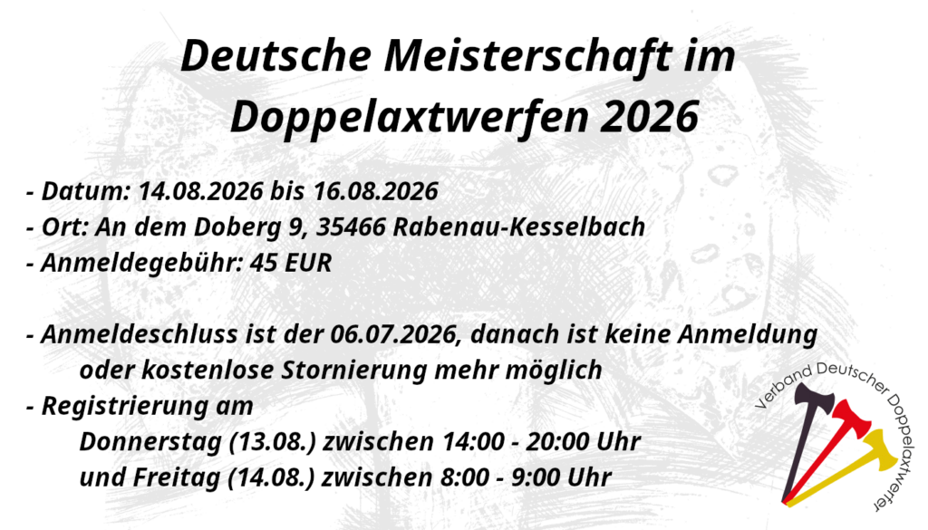 Wir freuen uns sehr darüber, die nächste Deutsche Meisterschaft im Doppelaxtwerfen 2026 ausrichten zu dürfen.